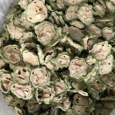 Dried Bitter Melon, also known as dried bitter gourd or dried bitter squash, is a preserved form of the bitter melon vegetable. This unique culinary item is revered for its medicinal properties and distinctive bitter taste, which is mellowed and concentrated through the drying process. In traditional medicine, it is believed to have various health benefits, including blood sugar regulation, immune system support, and aiding digestion. Culinary-wise, it is used in soups, teas, stir-fries, and herbal concoctions, adding a complex flavor profile and nutritional value to dishes. Dried Bitter Melon stands out not only for its flavor versatility but also for its role in promoting overall well-being through its natural properties.
